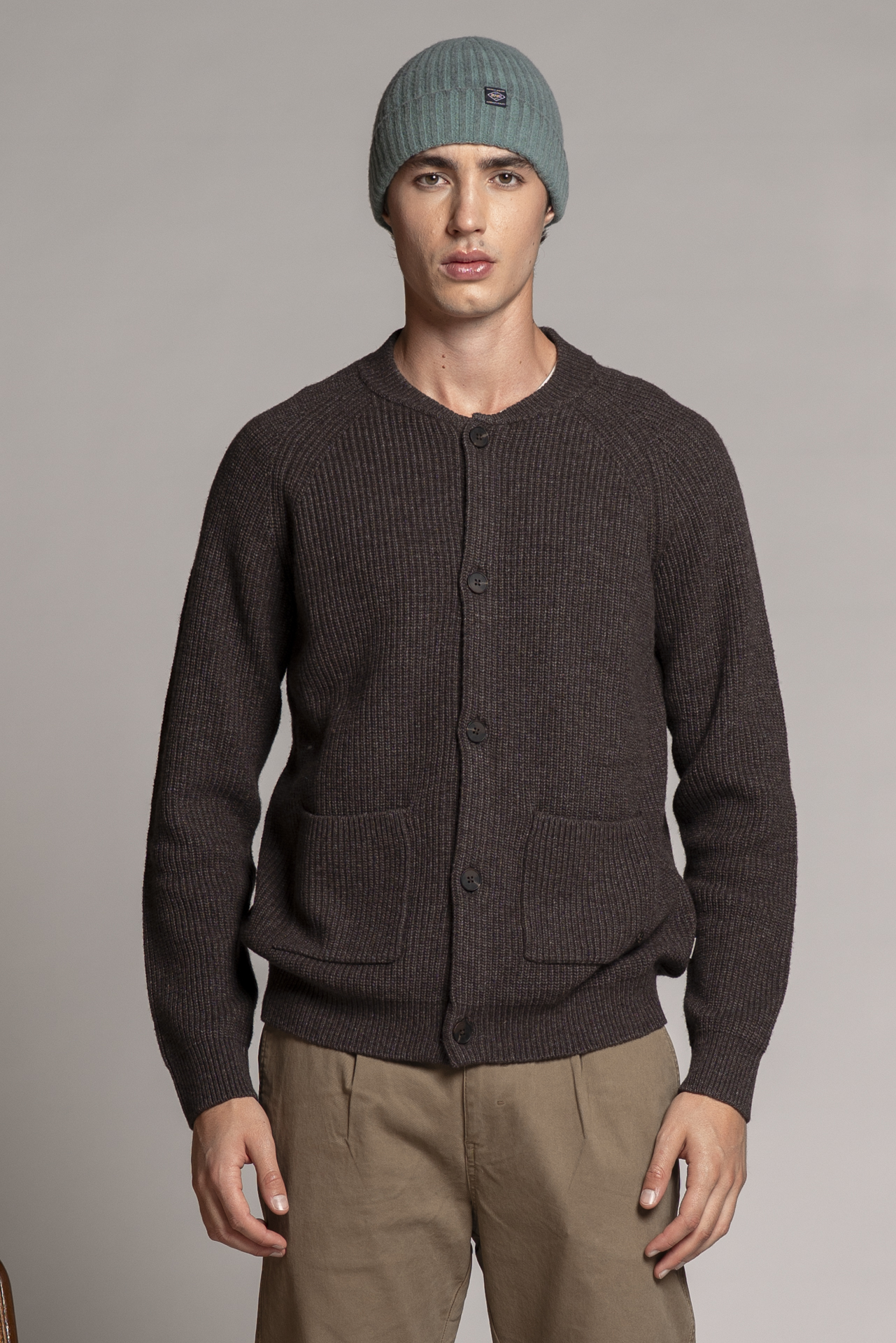 BOMBER BTN SWEATER LAMBSWOOL BROWN