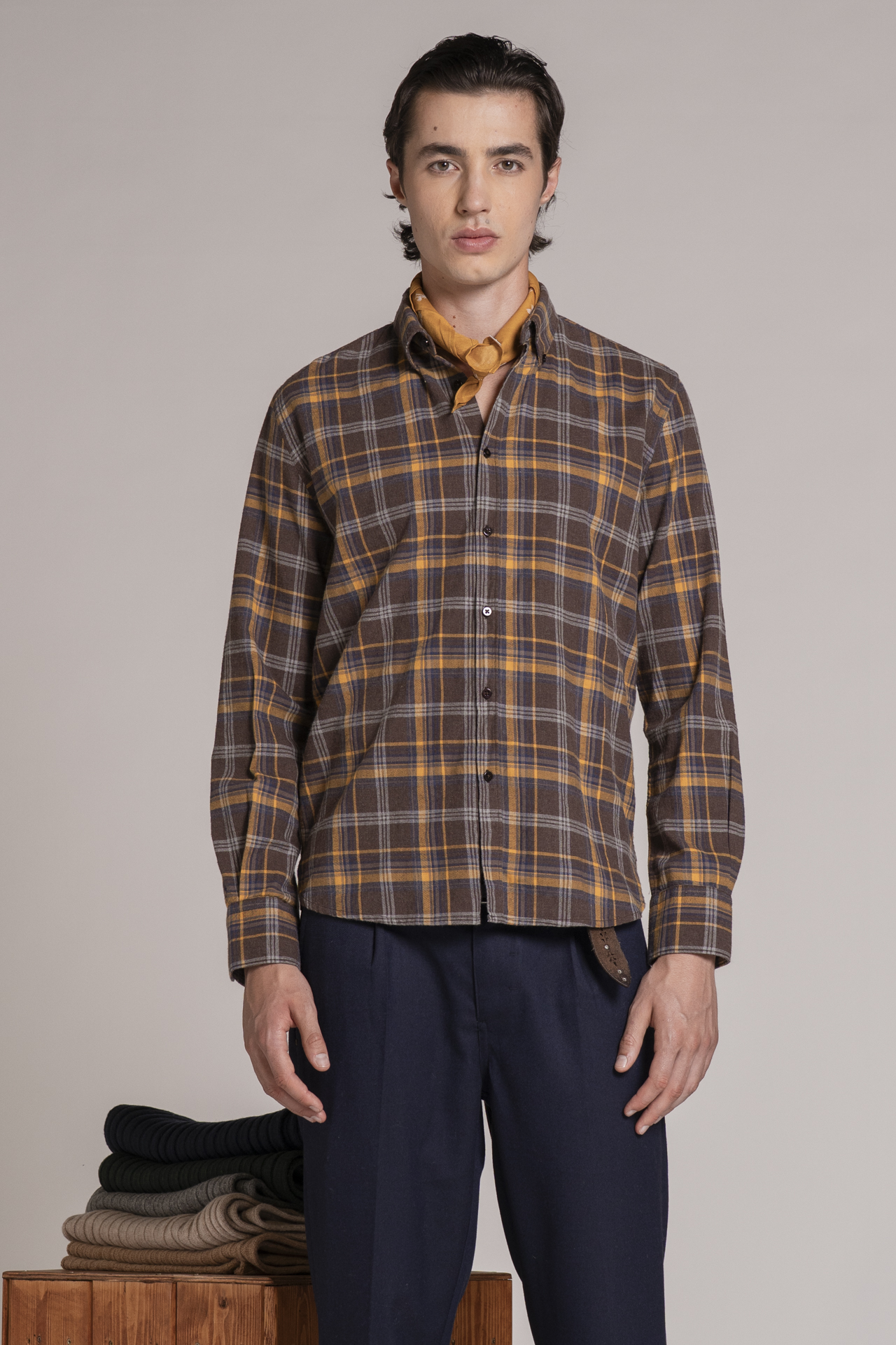 BUTTON DOWN REG.L/S FLANNEL SOFT BROWN CHECK