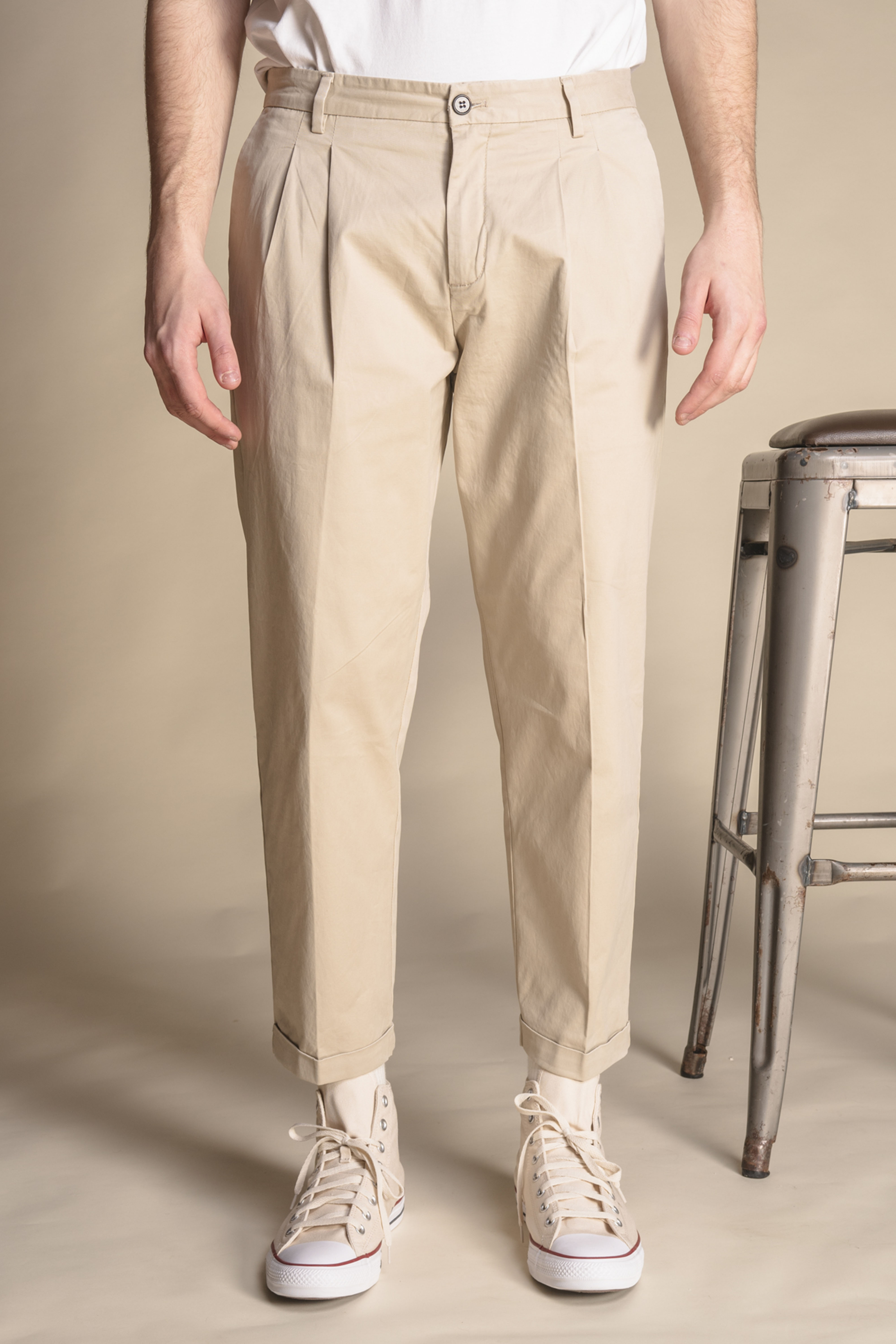 CHINO LONG COMF.PINCES TWILL STRETCH F/D BEIGE