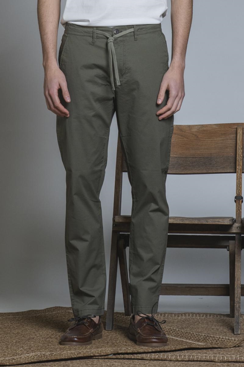 CHINO LONG SLIM POPELINE CANVAS F/D DK.GREEN