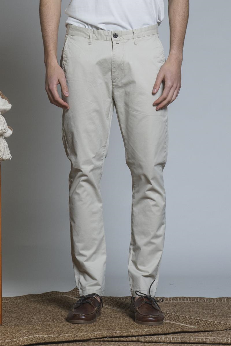 CHINO LONG SLIM TWILL STRETCH F/D ECRU