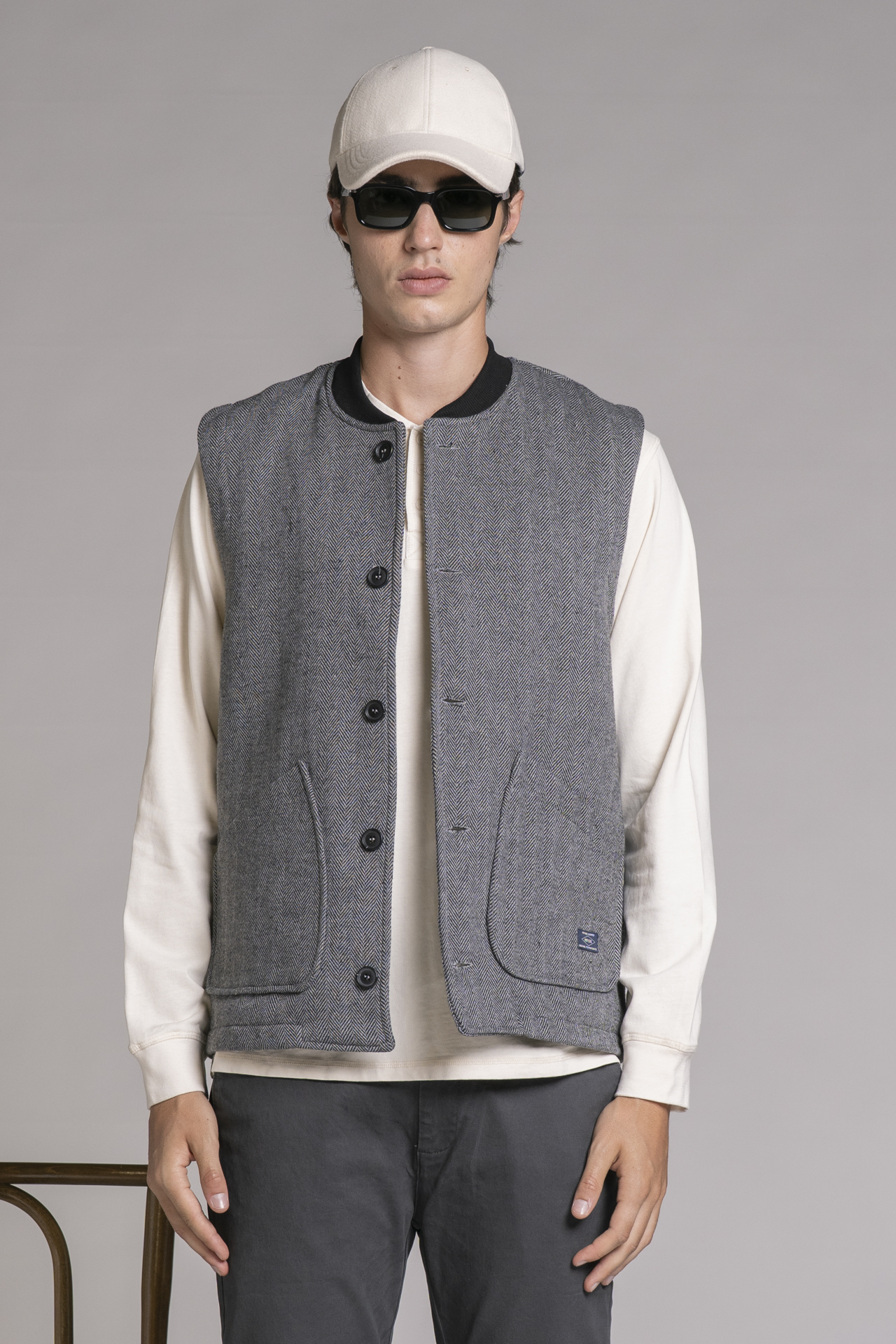 GILET BTN MIX. BOILED WOOL MIL.GREEN