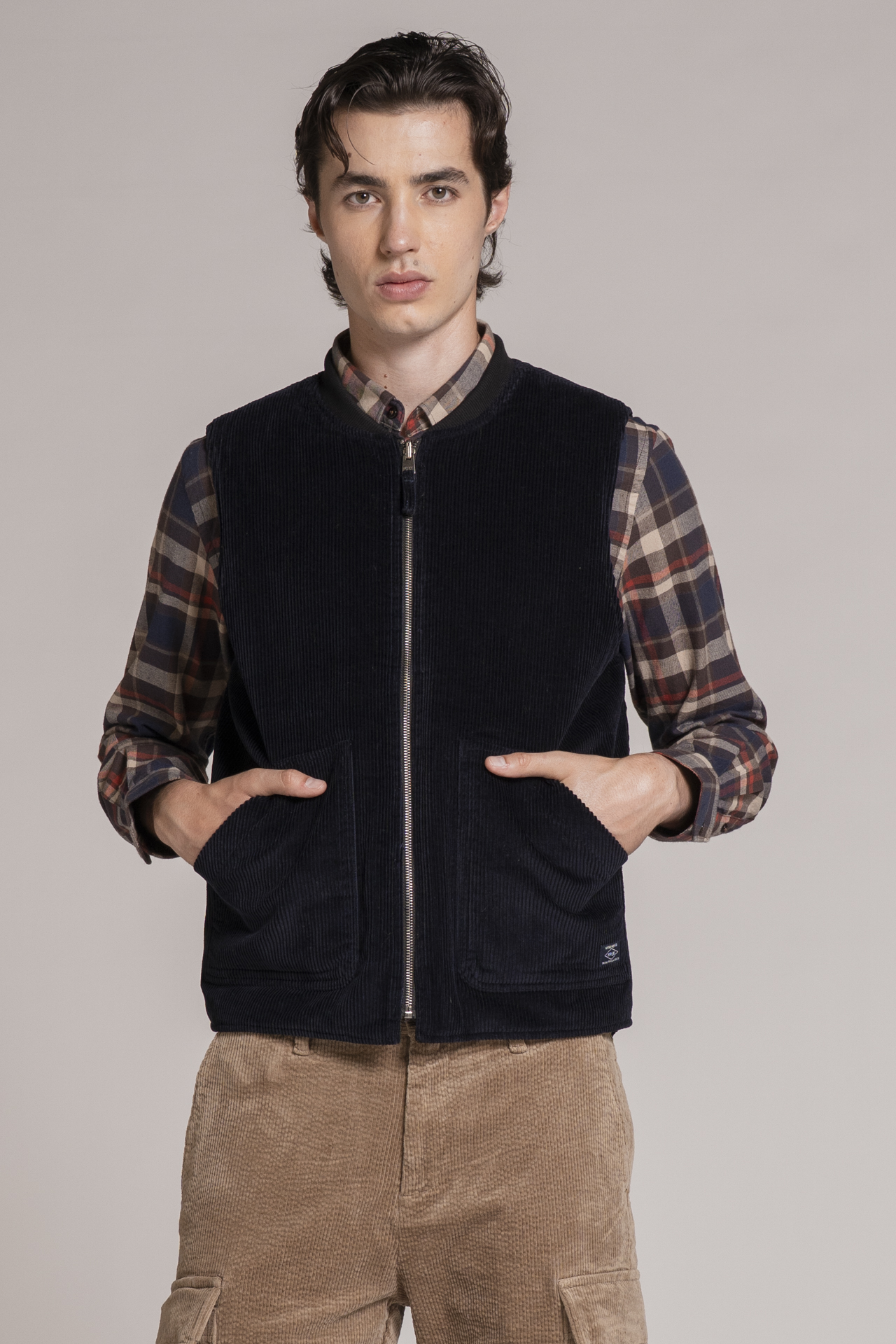 GILET REVERSE CORDUROY 500 STRIPES NAVY