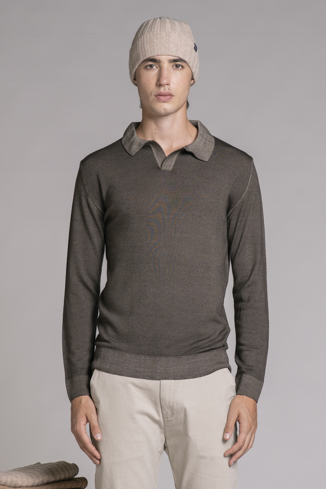 POLO NECK SKIPPER MERINOS ACID WASH DK.BROWN