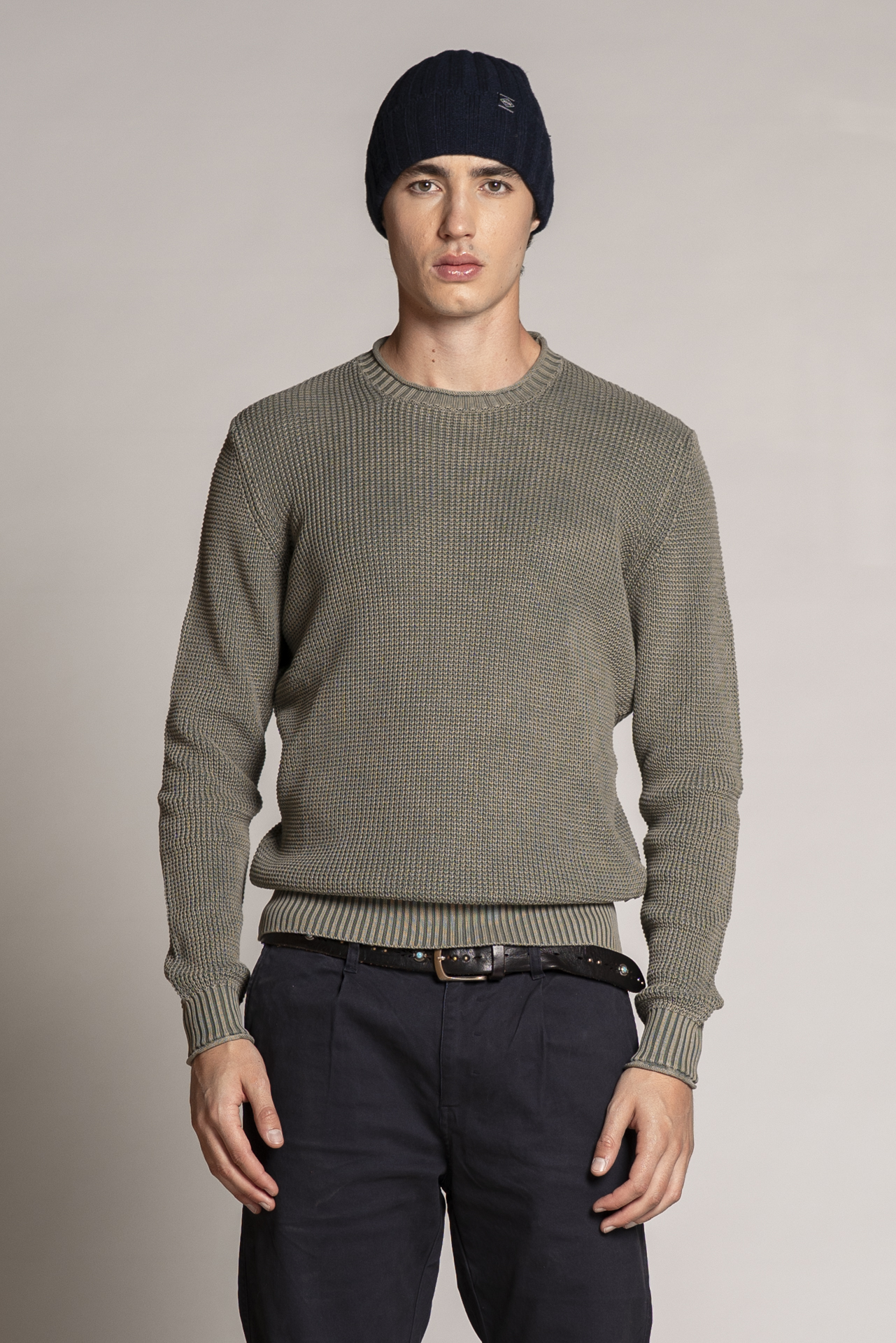 ROUND NECK COTTON STONE WASHED NAVY