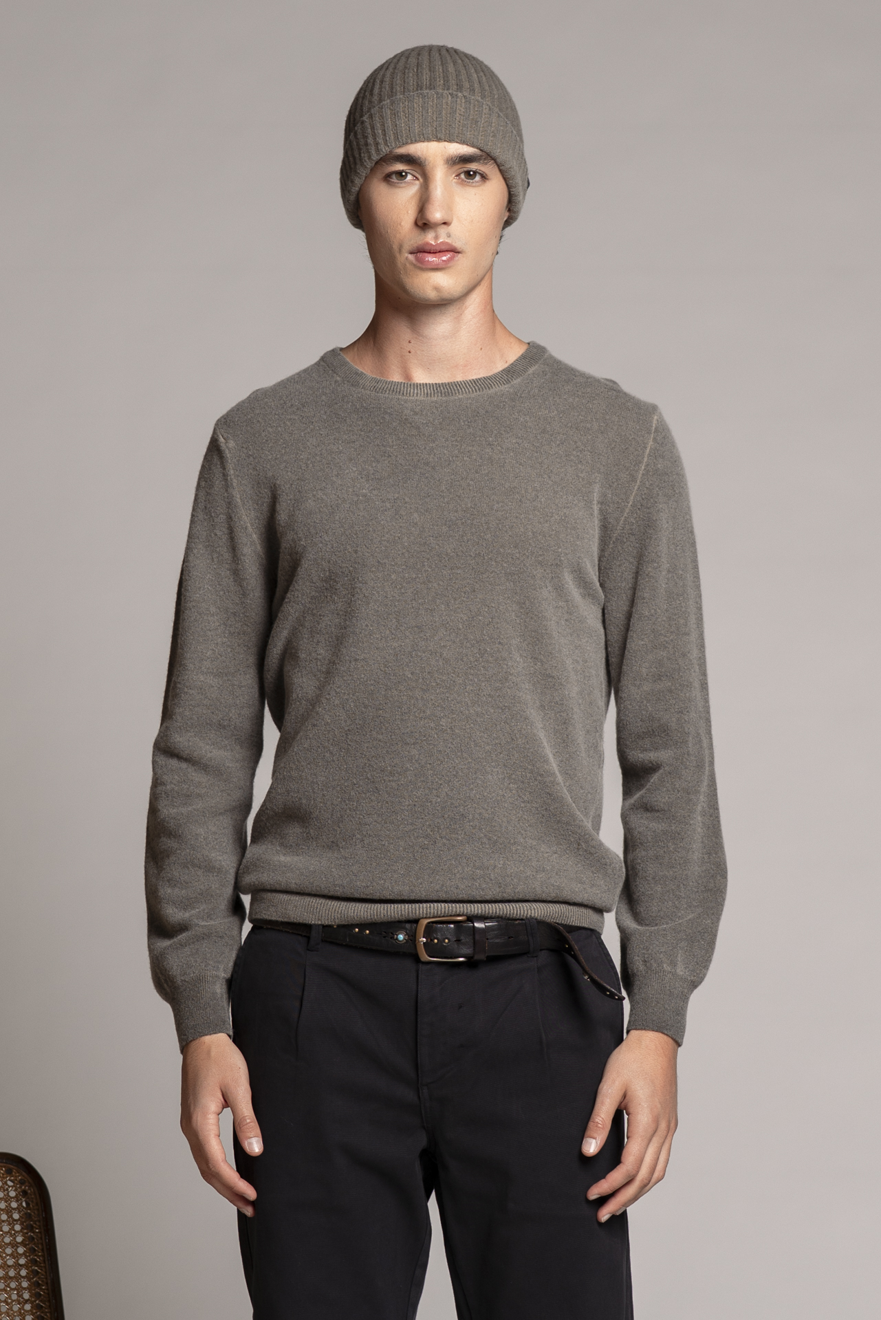 ROUND NECK MIXED WOOL COLD DYED COFFEE