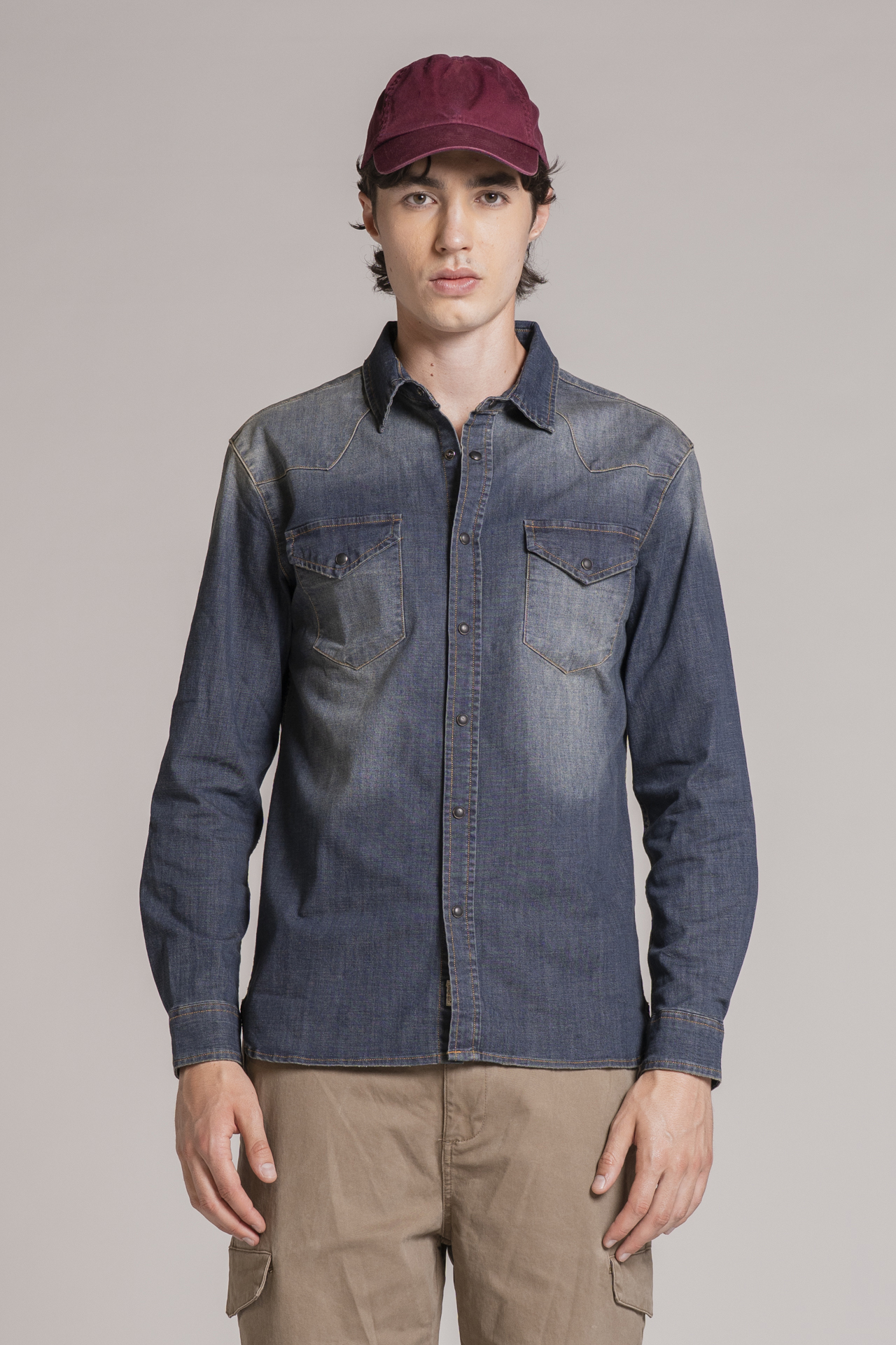 WESTERN SHIRT SLIM L/S DENIM MID WASH BLUE